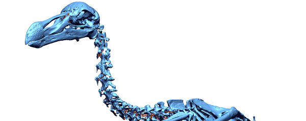 De 3D-beelden werden afgelopen donderdag op de Society for Vertebrate Paeontology te Berlijn onthuld. De wetenschappers hielden de skeletten voor een high speed laser scanner, om de kleinste details in kaart te brengen. De schedels werden afzonderlijk gescand om verborgen botstructuren te ontdekken die meer konden vertellen over het eetpatroon van de uitgestorven vogel.