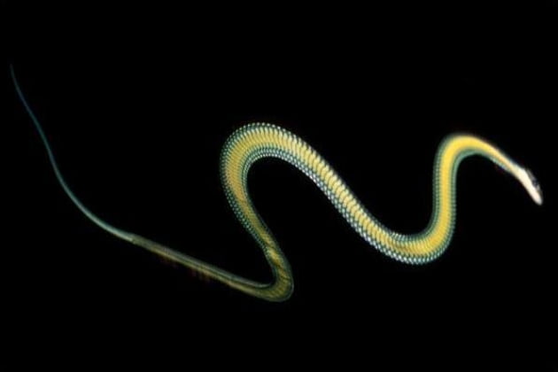 Slangen hebben allerlei kwaliteiten. Ze kunnen glijden, klimmen, wurgen, zwemmen… en vliegen. De paradise tree snake, die voornamelijk in Zuidoost- Azië voorkomt, is een goede klimmer en kan zichzelf door de lucht van boomtop naar boomtop verplaatsen.