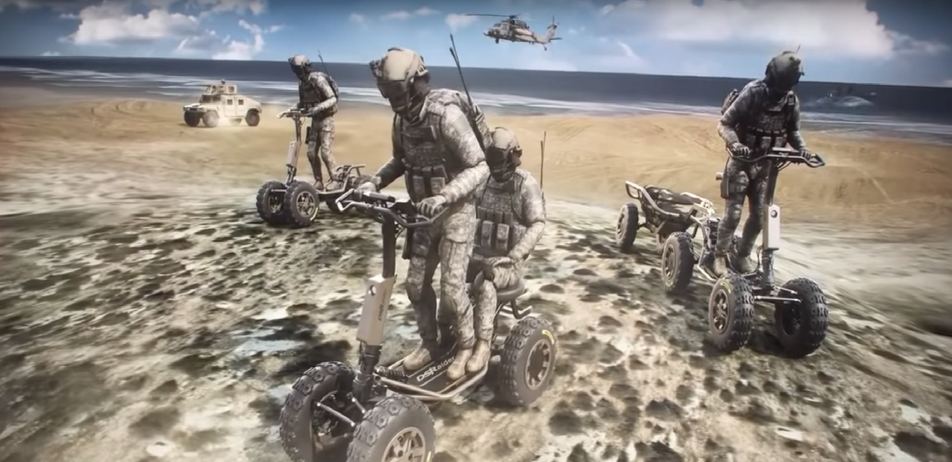 De EZRaider lijkt nog het meest op een Segway. De berijder staat op het elektrisch aangedreven voertuig en kan zo niet alleen zichzelf, maar ook nog eens 150 kilo materiaal of een collega meenemen. Alleen heeft dit apparaat geen twee, maar vier wielen. Het Amerikaanse leger heeft na initiële tests een reeks EZRaiders aangeschaft om de voertuigen ook onder operationele omstandigheden te kunnen beproeven.