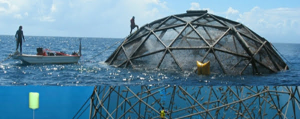 Fish farms zijn op zich niets nieuws. Al jaren worden in zeearmen en op andere plekken in zee grote bakken aan de bodem verankerd waar vervolgens ‘consumptievis’ in wordt vetgemest. Volgens zeebioloog Neil Anthony Sims is dat al heel wat beter dan de zeeën met grote sleepnetten leegtrekken, maar het kan ook op een manier die nog minder gevolgen heeft voor de natuur.