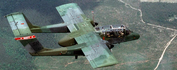 Het gaat hier om de Rockwell OV-10 Bronco. Een propeller-aangedreven, lichtbewapend vliegtuigje dat tijdens de Vietnamoorlog intensief werd ingezet. De toestellen konden snel opstijgen en richting grondtroepen vliegen als er ergens luchtsteun nodig was. Na de Vietnamoorlog werden ze grotendeels vervangen door de A-10, maar halverwege de jaren ’90 gingen ze geheel met pensioen en werden deels opgeslagen op AMARC, het Aircraft Maintenance And Regeneration Center in Tucson. AMARC staat beter bekend als The Boneyard (het vliegtuigkerkhof), maar een deel van de vliegtuigen wordt er ook opgeslagen om ze later weer te kunnen gebruiken.