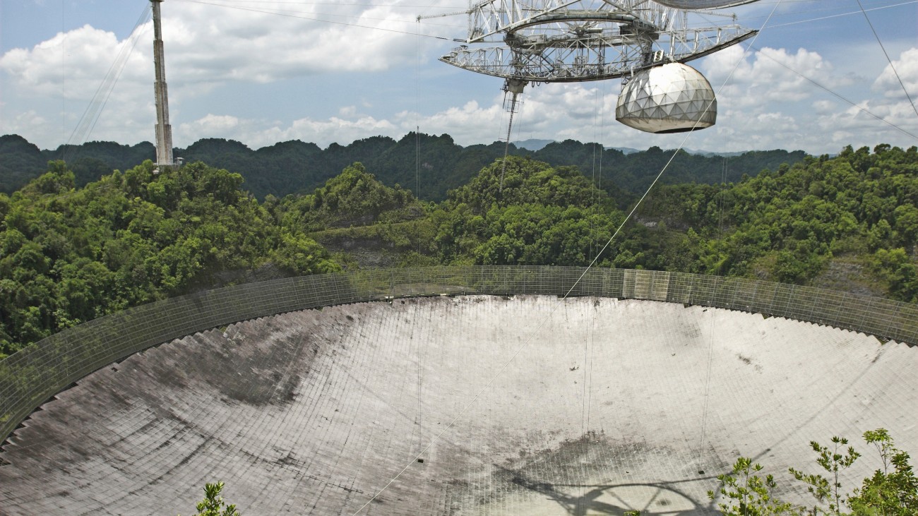 Toch wist Manzón genoeg. Wat op de foto had móéten staan, was namelijk de ruim 800 ton zware cabine met apparatuur die aan kabels boven de Arecibo-radiotelescoop hing. Maar die was dus naar beneden gedonderd. Boven op de telescoopschotel zelf, die met een diameter van 305 meter – of, in Amerikaanse eenheden, 1000 voet – decennialang de grootste en gevoeligste ter wereld was geweest.