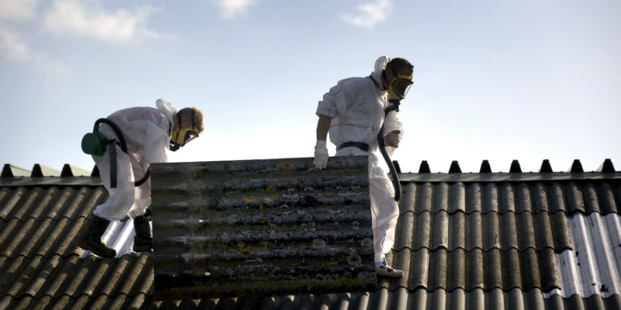 Als asbest in de open lucht wordt verwijderd, bijvoorbeeld van daken, is het belangrijk om asbesthoudende materialen niet te beschadigen of te breken om de verspreiding van asbestvezels te voorkomen. Besmette objecten, zoals dakpannen, worden losgeschroefd, in dubbel folie verpakt en op een officiële stortplaats gedumpt.