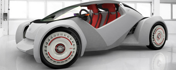 ’s Werelds eerste, door een 3D-printer gemaakte auto gaat de weg op.