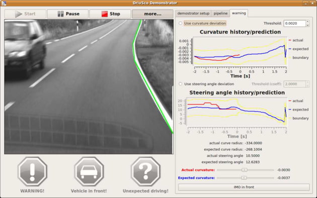De wagen houdt elke beweging van de bestuurder nauwlettend in de gaten, vergelijkt die twintig keer per seconde met wat er buiten de auto gebeurt en leert op die manier hoe de man of vrouw achter het stuur normaal een bocht aansnijdt. Als het systeem dan ’s nachts met zijn infraroodkoplampen en zijn stereocamera’s een bocht ziet en constateert dat de bestuurder daar sneller op af stevent dan normaal, dan slaat het alarm.
