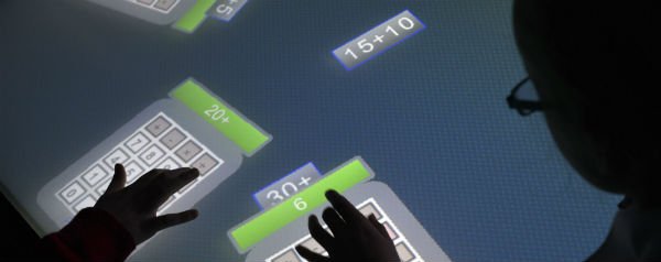 Het klinkt sowieso een stuk leuker dan sommetjes op papier maken: met de hele klas aan de touchscreentafels. En je lijkt er ook nog eens beter van te worden in wiskunde.