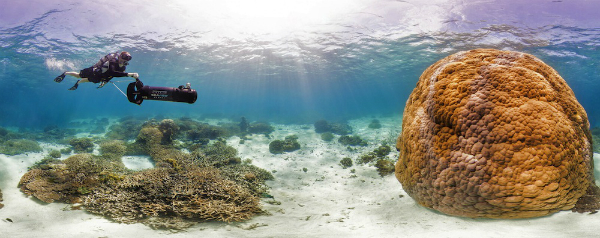 Onderzoekers van de Catlin Seaview Survey hebben namelijk spectaculaire 360-graden opnamen gemaakt van de belangrijkste koraalriffen ter wereld. De foto’s, reefscapes genoemd, worden gemaakt met een onderwatercamera. Die SVII maakt elke drie seconden een hoge-resolutie-opname die vervolgens met een computerprogramma ‘plat’ worden gemaakt.