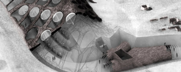 Maar Munro ziet voor woestijngebieden nog een andere, veel futuristischer ‘bouwmethode’ op basis van bloed. Als je een aangepast bloedmengsel in grote hoeveelheden over een grote zandduin giet, wordt de bovenste laag door de brandende zon gebonden en ontstaat er een waterdichte toplaag. Door bepaalde stukken van de zandduin niet te behandelen, kan de woestijnwind vervolgens het losse zand eronder wegblazen en na verloop van tijd ontstaat er dan een overdekte en bewoonbare ruimte of zelfs een complete ‘onderduinse’ stad.