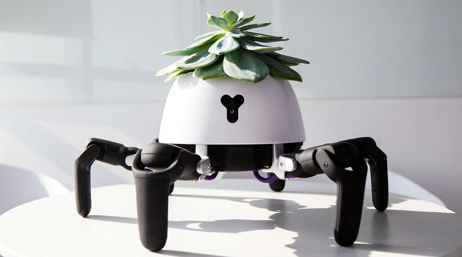 Hexa bestaat al langer, alleen is de robot nu geüpgraded en kan hij als slimme bloempot worden gebruikt. Zet een plant op zijn kop en Hexa – uitgerust met zes poten, negentien servomotoren, infrarood- en 720p-camera’s en een Linux-besturingssysteem – zorgt ervoor dat hij wordt verzorgd. De bloempot loopt naar de zon toe wanneer de plant daar behoefte aan heeft en verschuilt zich weer in de schaduw als dat nodig is. Ook doet Hexa een gek dansje als de plant gebrek aan water heeft.
