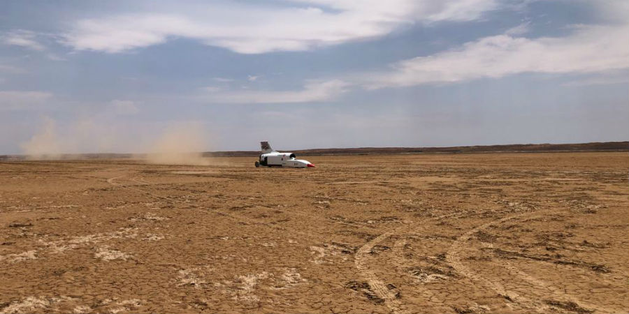 Vlak voor het weekend reed de supersonische kar een stuk over de Hakskeenpan in Zuid-Afrika, een drooggevallen meer van 20 kilometer lang en ruim een kilometer breed. Een ideale omgeving om het uiteindelijke snelheidsrecord te vestigen.