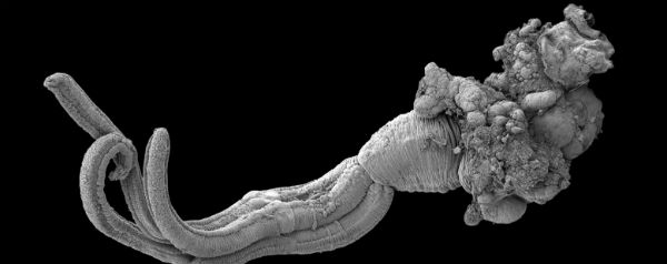 Wanneer een walvis het loodje legt in de ijskoude wateren van Antarctica vormt zijn karkas het decor van een waar vreetfestijn van wormen. De typische roze aanslag die het gevolg is, is te wijten aan twee nieuw ontdekte wormensoorten: Osedax antarcticus en Osedax deceptionensis (Osedax is Latijn voor ‘bottenverdelger’).