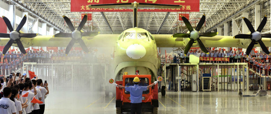 De Chinezen proberen al een tijdje mee te doen met de grote jongens in de vliegtuigwereld, maar kennen een geschiedenis van vertragingen en problemen. Het vliegtuig AG-600, dat zowel vanaf een harde ondergrond als water kan opstijgen, moet ze een duwtje in de goede richting geven. Onlangs is het gigantische toestel onthuld.