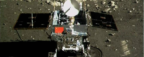 Vandaag stuurde de Chinese maanrover Yutu (Jade Konijn), die afgelopen zaterdag landde, foto’s van zichzelf naar de aarde. Hierop staat het onbemande vaartuig met een Chinese vlag op het maanlandschap.