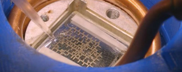 De waterdruppels zijn geplaatst in een afgesloten ijzeren raster dat in een magnetisch veld ligt. Dit veld wordt door elektromagnetische spoelen in het apparaat opgewekt. Verder bestaat de ‘chip’ uit hele kleine T- en I-vormige stukjes metaal die zo geordend liggen dat ze de vorm van het magnetisch veld kunnen veranderen.