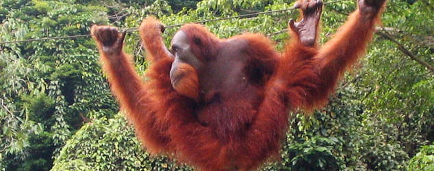 De Sumatraanse orang-oetan. Zie foto. de populatie is de laatste 75 jaar met maar liefst 80 procent afgenomen.