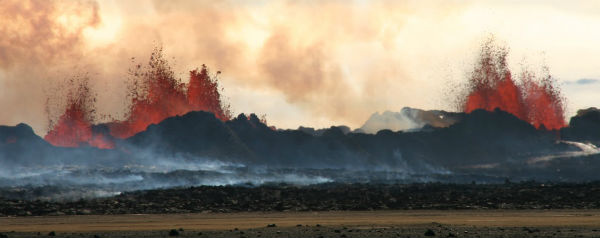 Bij de vulkaanuitbarstingen waar het hier om gaat, moet je niet denken aan de klassieke berg die lava uitspuwt. Het gaat om grootschalige uitbarstingen waarbij een groot gebied werd bedekt met lava dat stolde tot basalt; de zogenoemde vloedbasalten. Eén zo’n vloedbasalt vond 65 miljoen jaar geleden plaats, in het huidige India. En volgens sommige wetenschappers deed die gebeurtenis, en dus niet een inslag van een asteroïde, de dino’s de das om.