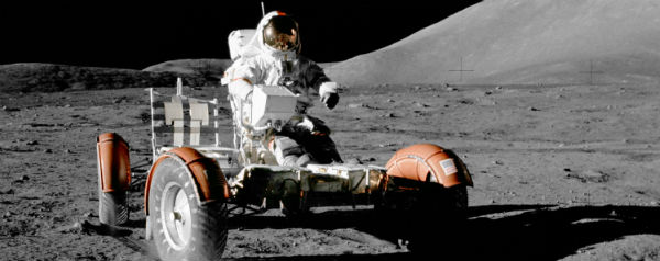 Tijdens drie verschillende Apollo-missies in 1971 en 1972 ging er steeds een Lunar Roving Vehicle (LRV) naar de maan. Letterlijk.
