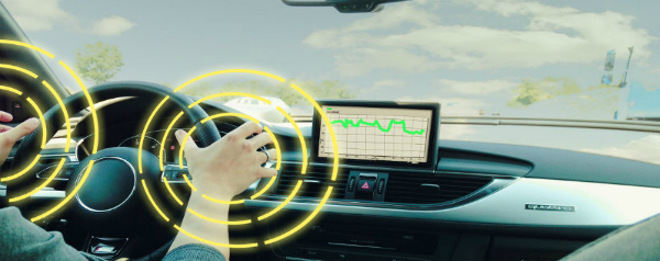 Het gaat om een sensorstrip, Sensofoil genoemd, die onder de buitenste laag van het autostuur moet worden geplaatst. Als de bestuurder het stuur vasthoudt, registreren de strip en de microprocessor hoe hard hij (of zij natuurlijk) knijpt, hoe vaak de handen van positie veranderen en waar het stuur over het algemeen wordt vastgehouden.