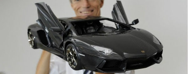 Het model, een Lamborghini Aventador op schaal 1:8, werd gemaakt door de Duitse modelbouwer Robert Gülpen. Gülpen haalde al eerder de internationale pers met miniatuurversies van de Morgan Aero 8, de Mercedes Benz 500 SL en een Aston Martin DB5, die hij stuk voor stuk optrok uit peperdure metalen en edelstenen.
