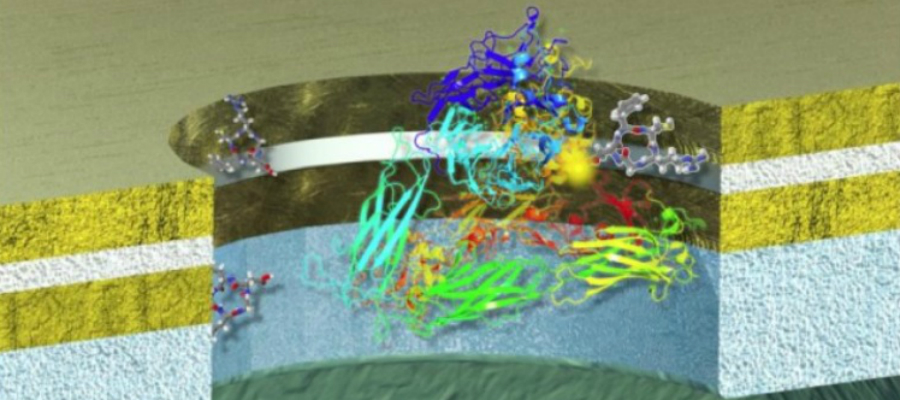 Het lukte het team om enkele stukjes DNA en aminozuurketens (stukjes eiwit) op deze manier te bestuderen. De volgende uitdaging: volledige eiwitten. Er werd gekozen voor het alpha-v-beta-3-eiwit, een eiwit dat zich verschanst in het celmembraan. Lindsay en collega’s stopten het eiwit tussen de elektroden en zagen dat het molecuul een opmerkelijke grote hoeveelheid stroom geleidde.