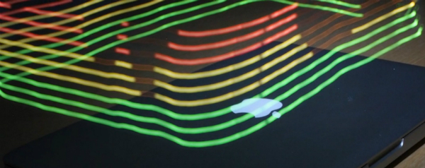 In een laptop wordt elektromagnetische straling onder meer geproduceerd door de koeling, de draaiende harddisk en elektrische contacten. Normaal gesproken is straling met de betreffende golflengtes onzichtbaar voor het menselijk oog, maar Luke Sturgeon en Shamik Ray van het Copenhagen Institute of Interaction Design hebben het toch voor elkaar gekregen ze te tonen.