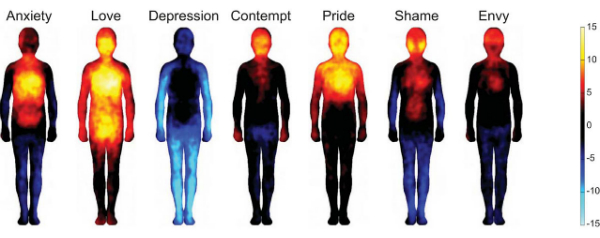 Dat emoties – zenuwachtig zijn bijvoorbeeld, en je daarvoor schamen – tot lichamelijke kenmerken leiden; wisten we al langer. Maar waar de wetenschap nog niet uit was, is of die lichamelijke reacties voor iedereen gelijk zijn. Uit een onderzoek van de Finse Aalto-universiteit blijkt nu van wel. Ongeacht iemands culturele achtergrond of taal: verschillende emoties worden op dezelfde plekken in het lichaam ervaren.