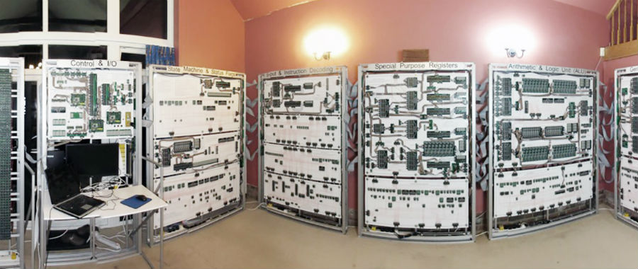 Stel, je hebt een paar tienduizenden euro’s over. Wat doe je ermee? ‘Een gigantische computer bouwen waarmee je vrij weinig kunt’, is waarschijnlijk een antwoord dat je weinig zult horen. Maar het is wel het antwoord van James Newman uit Cambridge. Hij bouwde deze ‘Megaprocessor’ waarmee hij de werking van computerchips wil laten zien en stak er 45.000 euro in. Alles voor educatieve doeleinden.