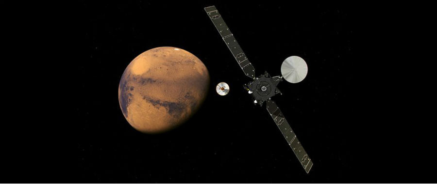 De Trace Gas Orbiter moet in tegenstelling tot Schiaparelli wel serieus wetenschappelijke gegevens gaan verzamelen. Dit ruimtescheepje is daartoe succesvol in een baan rond Mars gebracht op zo’n 400 kilometer hoogte. Vanuit die positie zal TGO vanaf december 2017 op zoek gaan naar gassen als methaan, die mogelijk zijn ontstaan bij biologische processen.