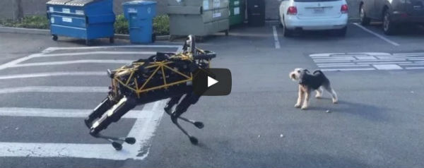 Spot, het mechanische trouwe maatje van Boston Dynamics, heeft het op sociaal gebied nogal lastig. Echte honden moeten hem namelijk niet, zo valt wel op te maken uit dit filmpje. Cosmo, de hond van Android oprichter Andy Rubin, blaft de longen uit zijn lijfje om Spot even te laten zien dat hij de baas is.