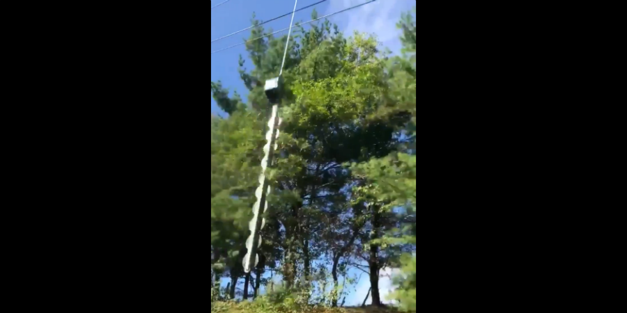“Ik had bij de vergadering willen zijn waarbij dit idee werd voorgesteld”, schrijft Tariq Rauf boven het filmpje van de luchtzaag op Twitter. Ja, wij ook. Want hoe kan zoiets, waarbij iedereen de doemscenario’s direct voor de geest kan halen, ooit bedacht, gemaakt, en dan ook nog in gebruik genomen zijn?