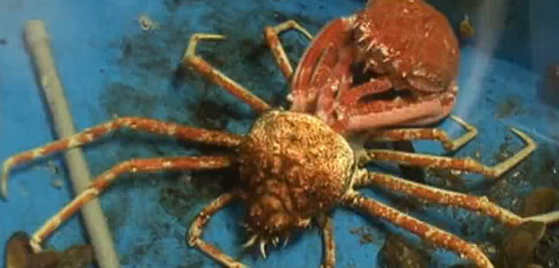 De Japanse reuzenkrab (Macrocheira kaempferi) is, zoals de naam al zegt, een nogal uit de kluiten gewassen krab die voorkomt in de zeeën rond Japan. Het dier kan een afschrikwekkende ‘spanwijdte’ van 3,8 meter halen en bijna 20 kilogram wegen.