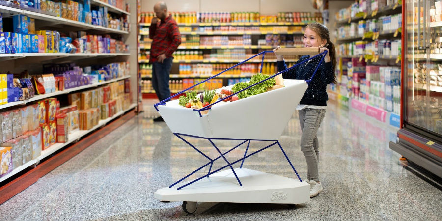 Bij de winkelwagens betekent het dat het karretje vanzelf stopt. Ford lijkt zich hiermee vooral op kinderen te richten die de winkelwagentjes maar wat graag als botsauto’s gebruiken. Zodra een koter de boodschappenkar als skateboard of step gebruikt, remt de slimme winkelwagen en voorkomt hiermee botsingen.