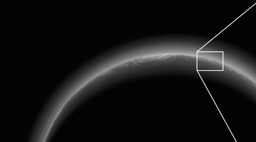 Een spectaculaire foto van New Horizons laat zien dat Pluto misschien wolken heeft.