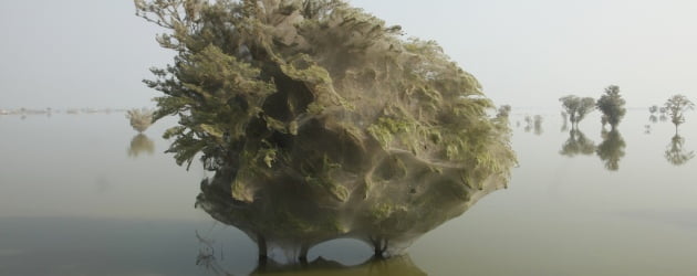 Moessonregens overspoelden vorig jaar zeker een vijfde van Pakistan. Dat gooide niet alleen de levens van miljoenen inwoners van het Aziatische land overhoop, maar joeg ook de spinnenpopulatie massaal de bomen in. Met bizarre taferelen tot gevolg.
