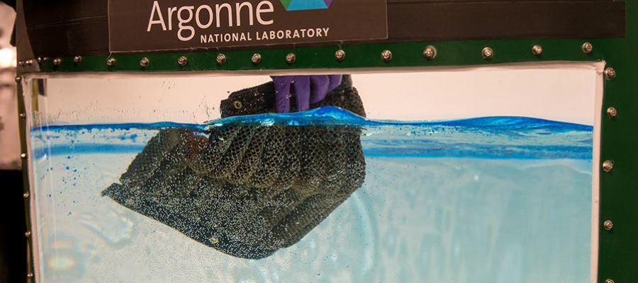 Dat moet anders, dachten onderzoekers van het Argonne National Lab in Illinois (VS). Ze hebben het voor elkaar gekregen om een spons te maken die negentig keer zijn eigen gewicht aan olie op kan zuigen en het vervolgens weer kan vrijlaten. Dit doet het materiaal tot zo’n honderd keer achter elkaar zonder capaciteit te verliezen.