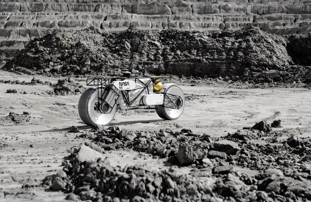 Als het aan Duits motorbedrijf Hookie ligt rijden er in de toekomst astronauten op motoren over het pokdalige maanoppervlak.