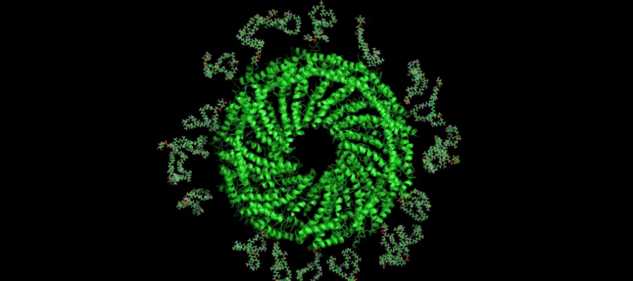 Beeld: Peter Kasson et al, Model for a novel membrane envelope in a filamentous hyperthermophilic virus, eLife (2017)