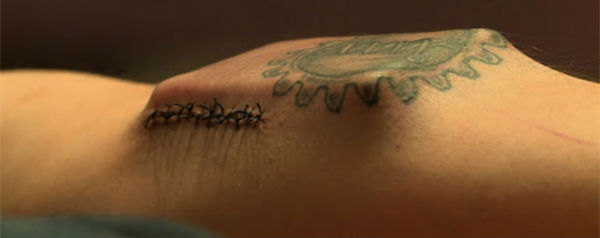 Wie dacht dat de onderhuidse chip nog even op zich liet wachten, heeft het mis. De Duitser Tim Cannon is de eerste die een gigantische computerchip onder zijn huid heeft aangebracht. Het apparaat is een biometrische sensor die allerlei waarden in het lichaam meet. En dat ziet er, op z’n zachts gezegd, nogal beangstigend uit.