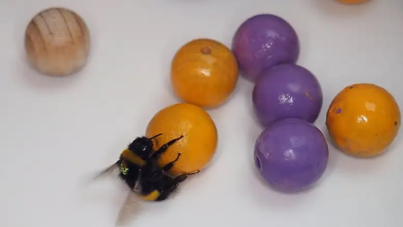Kijk hem eens plezier hebben! Hommels lijken serieus te genieten van het rollen met houten balletjes, zo lijkt nieuw onderzoek uit te wijzen.