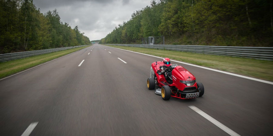 Je gazon maaien met de Mean Mower V2 is wellicht niet zo’n strak plan; de zitmaaier haalt een snelheid van 243 kilometer per uur.