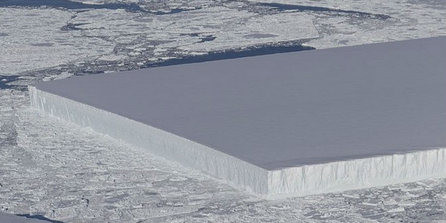 Bij het woord ijsschots denk je toch al snel aan een enorm, puntig gevaarte dat er in 1912 voor zorgde dat de Titanic zonk. Maar ijsbergen kunnen ook geometrische vormen aannemen, bewijst dit exemplaar dat de NASA onlangs op de gevoelige plaat legde. Hoe is het toch mogelijk dat de schots zo’n perfect rechthoekige vorm heeft?