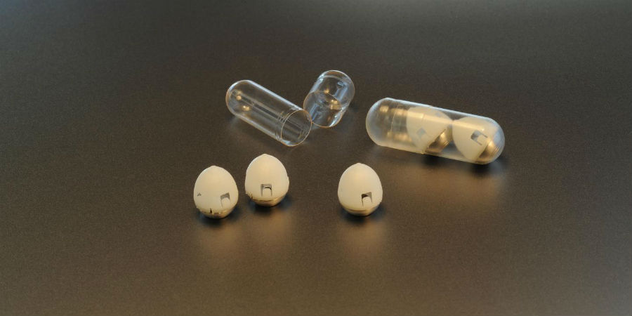 Om ervoor te zorgen dat het medicijn echt in de maagwand wordt gespoten, hebben de onderzoekers de capsule zodanig ontworpen dat ongeacht hoe hij in de maag terechtkomt, hij altijd in contact komt te staan met de binnenkant van de maag. Vandaar self-orienting.