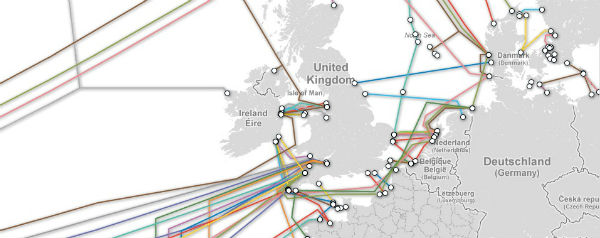 Op de kaart staan alle belangrijke internetkabels schematisch weergegeven. Als je een kabel aanklikt, zie je verschillende gegevens over de kabel. Wie is de eigenaar? Hoe lang is de kabel? In welk jaar is de kabel getrokken? Enzovoort. Zo loopt er een kabel tussen Nederland en Engeland van 250 kilometer lang, maar is er ook een kabel getrokken van ruim 15.000 kilometer lang tussen Nederland, Denemarken, Duitsland en Amerika.