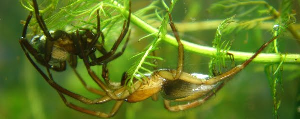 De waterspin, of duikerklokspin (Argyroneta aquatica) is de enige in zijn familie die zijn hele leven onder water leeft. De slimme spin vangt aan het wateroppervlak wat lucht in een web, zodat hij onder water kan overleven. Tot zover niets nieuws, in ieder geval niet voor de wetenschap.
