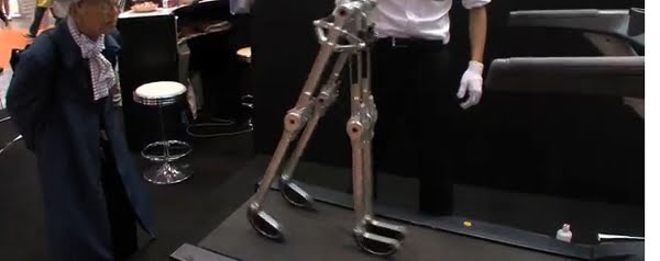 BlueBiped werd ontwikkeld door wetenschappers van het Nagoya Institute of Technology en heeft echt dezelfde natuurlijke tred als een mens. Hij wandelt, in tegenstelling tot zijn collega-robots, zonder kunstmatige spieren, elektromotortjes of computers. Je geeft hem een duwtje en hij kuiert op zijn gemak over de loopband.