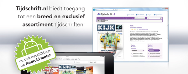 De digitale versie van KIJK is vanaf nu niet alleen op de iPad, maar ook op Android-tablets te lezen. En abonnees doen dat gratis!