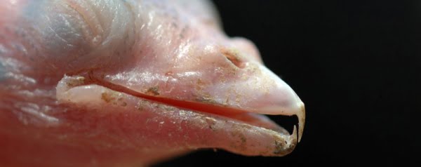 Met een infraroodcamera die ze bij een holletje begroeven, legden de wetenschappers van Cambridge vast hoe het kuiken van de honingspeurder vervolgens eerder uitkomt dan zijn pleegbroertjes en zijn veel kleinere concurrenten minutenlang keer op keer bijt. De kuikens hebben daarvoor een speciale haak op hun snavel die zo scherp is als een naald (zie de afbeelding). Die wordt daarna snel kleiner; tegen de tijd dat de jongen twee weken oud zijn, is hij zelfs volledig verdwenen.