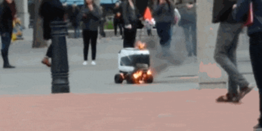 Ondanks hun stevige plek in de maatschappij, zijn robots verre van feilloos. Dat bewijst de kleine bezorgbot die afgelopen vrijdag op de campus van de UC Berkeley uit het niets in vlammen opging. Gelukkig bleef het bij de mechanische bezorger, die uiteindelijk uit zijn lijden verlost werd door een scherpe student met een brandblusser.