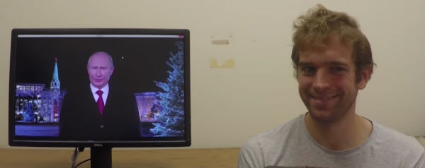 Een beetje creepy is het wel, maar het is waarschijnlijk ook de enige keer dat je een glimlach zult zien op het gezicht van Poetin.
