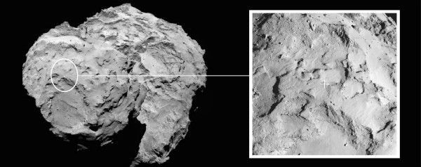 Dit weekend hebben onderzoekers bepaald waar de lander van de Rosetta-sonde op de komeet 67P zal worden neergezet.